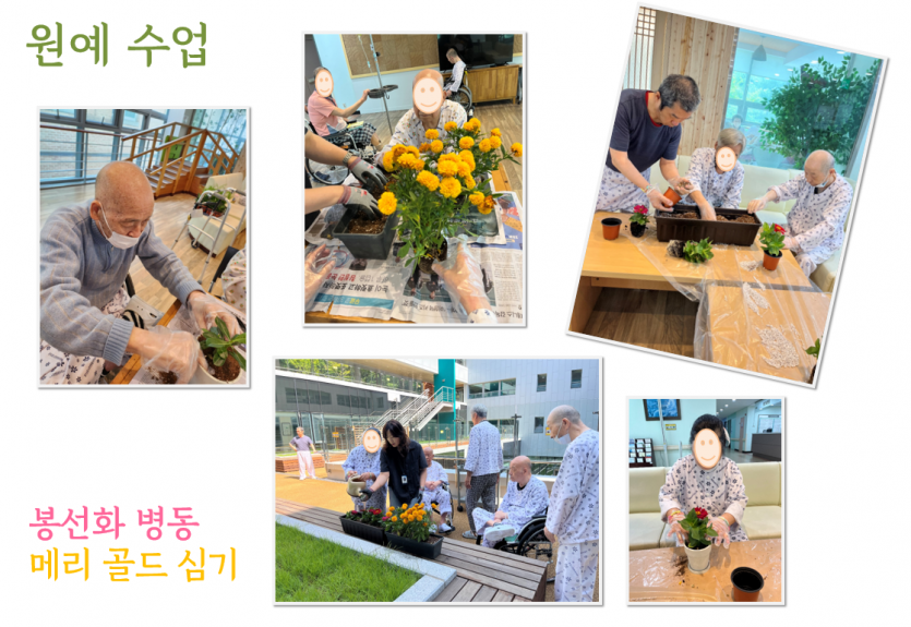 7월 비약물프로그램 (원예수업) 페이지 정보 작성자 경기도립노인전문동두천병원 댓글 0건 조회 1,278회 작성일 25-08-03 15:58 목록 본문 7월 원예수업시간에는 어르신들과 함께 병동내 에서 정성껏 심은 꽃들을야외 중앙정원에 예쁘게 전시하였습니다 이전글7월 비약물 프로그램(미술수업) 25.08.03 다음글7월 비약물프로그램 (공예수업) 25.08.03 댓글 0 댓글목록 등록된 댓글이 없습니다.
