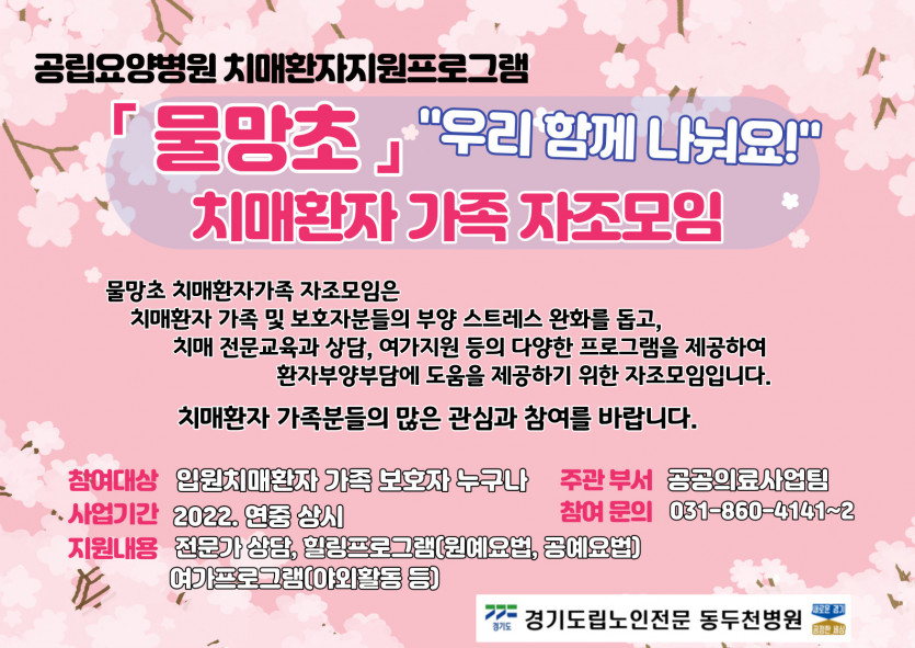 치매환자지원프로그램 『물망초』 치매환자가족 자조모임 안내
